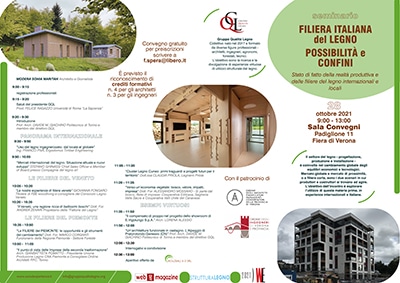 Il 28 ottobre, dalle ore 9:00 alle 13:00, in occasione della fiera Wood Experience di Verona, presso la Sala Convegni Padiglione 11, Gruppo Qualità Legno terrà il seminario, moderato dall’architetto Sonia Maritan, ‘FILIERA ITALIANA del LEGNO POSSIBILITÀ e CONFINI – Stato di fatto della realtà produttiva e delle filiere del legno internazionali e locali’, che prevede il riconoscimento di crediti formativi: 4 per gli architetti e 3 per gli ingegneri.