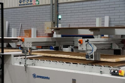 In Barberán, personalizzare i nostri macchinari in base alla vostra produzione specifica è uno dei nostri punti di forza. Un grande esempio è questa linea di assemblaggio di porte, in cui la produzione è stata ottimizzata con due tavoli di trasporto indipendenti ma collegati che consentono all’operatore di investire il tempo in modo più efficiente.