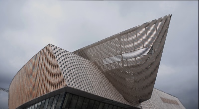 Il nuovo Centro Congressi MICX di Mons (Belgio) è stato progettato dallo studio di Daniel Libeskind, che lo ha pensato come un nuovo punto di riferimento architettonico e un elemento chiave del rilancio economico cittadino, come un potente connettore fra vecchio e nuovo. La struttura è in cemento armato rivestito poi, nella parte alta, in alluminio anodizzato e nella parte bassa in doghe di legno grezzo verticali, nel volume inferiore, che richiamano i profili degli alberi del parco vicino.
