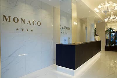 Lo storico Hotel Monaco di Lignano Sabbiadoro è stato ristrutturato dall’architetto Oscar Rizzatti, trasformandolo in un elegante albergo dal design contemporaneo e cambiando il volto della struttura, utilizzando sapientemente i materiali per impreziosire gli spazi e innalzare l’offerta ricettiva nel segno della qualità. Un intervento radicale che ha consentito all’hotel di passare dalle 3 stelle alla classificazione 4 stelle superior. In questo contesto, si colloca la scelta della collezione Majestic di Ceramiche Piemme, vero elemento di raccordo che unisce, in un’ideale continuità stilistica, l’intero albergo: dalla piccola, ma accogliente, reception alle parti comuni dei piani, fino ai bagni delle 9 junior suite. Le piastrelle di grande formato ripropongono in grès fine porcellanato vene e screziature tipiche del marmo di Carrara, grazie a una tecnologia digitale all’avanguardia. Il candore della materia prima originale unito alla qualità della migliore ceramica Made in Italy restituisce un risultato di grande eleganza in tutti gli ambienti. “All’Hotel Monaco abbiamo lavorato per sottrazione, così da conferire a ogni spazio un carattere ricercato, in cui niente è lasciato al caso. La scelta dei materiali è stata quindi fondamentale per raggiungere questo risultato. La luminosità della pavimentazione di Ceramiche Piemme accoglie il cliente fin dall’ingresso contribuendo a innalzare immediatamente la percezione di qualità della struttura ricettiva”, sottolinea l’architetto Oscar Rizzatti. Le lastre effetto marmo sono affiancate al legno wengè per altri pavimenti delle stanze e per mobili e arredi progettati in collaborazione con lo studio Areedesign di Codroipo (Ud). Il progetto di ristrutturazione ha consentito all’Hotel Monaco di strutturare l’accoglienza su 34 camere e 9 grandi junior suite. Grande spazio per la terrazza panoramica con solarium e area relax che affaccia sui giochi d’acqua di Piazza Fontana, luogo simbolo della cittadina friulana. Ridisegnati anche il bar, aperto al pubblico, e la sala colazioni.