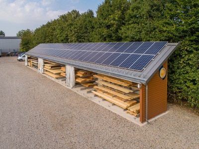 OHRA, azienda che produce e vende sistemi di scaffalatura, ha costruito un magazzino con scaffalature cantilever per la falegnameria Turingia Torsten Schmidt, il cui programma di produzione spazia dalle porte d’ingresso ai rivestimenti, fino alle finestre ai mobili. Questo magazzino non solo offre spazio per i pannelli e il legno massiccio, ma supporta anche un tetto dove è stato installato un impianto fotovoltaico. Speciali bracci di supporto e barre di copertura consentono un’inclinazione di 30 gradi, ottimale per gli impianti solari. L’intera sotto-struttura è stata progettata per sostenere il peso aggiuntivo dei 60 pannelli solari pari a circa 1 tonnellata. La falegnameria ha potuto aumentare la capacità di stoccaggio del 40% grazie a una scaffalatura di 30 metri, generando allo stesso tempo corrente elettrica dal tetto per il proprio fabbisogno.