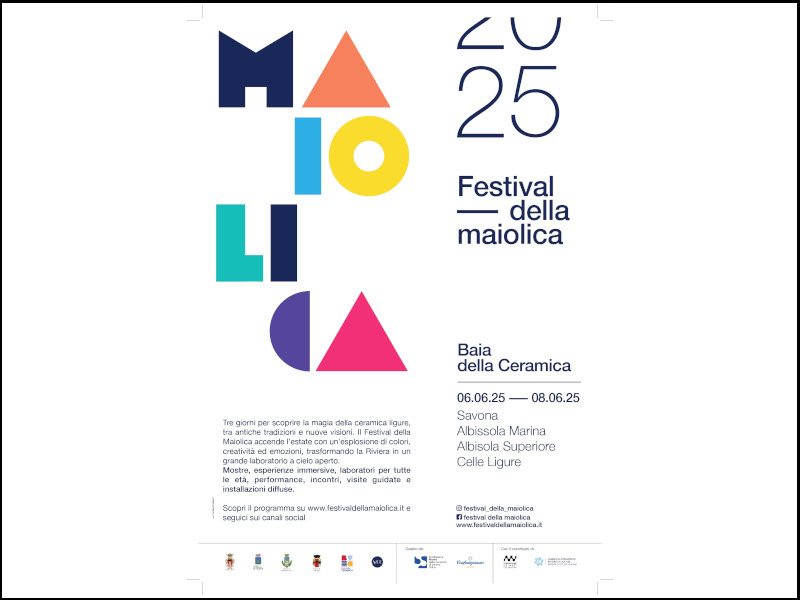 Dal 6 all’8 giugno 2025, la Baia della Ceramica (Savona, Albissola Marina, Albisola Superiore e Celle Ligure) ospiterà la terza edizione del Festival della Maiolica: tre giorni di eventi diffusi per scoprire una Liguria dove la ceramica è storia, arte e futuro.