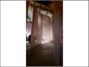 In questo contesto suggestivo, ideato dai professori Ingrid Paoletti e Stefano Capolongo, dal premio Nobel Konstantin Novosëlov e dalla scenografa Margherita Palli Rota, spiccano i leggeri pannelli in tessuto Polyshed FR ignifugo e dalla mano morbida di GIOVANARDI, solitamente destinato all’arredamento outdoor. Questi pannelli creano delicate quinte semitrasparenti che accompagnano i visitatori in un percorso di scoperta dei progetti esposti.