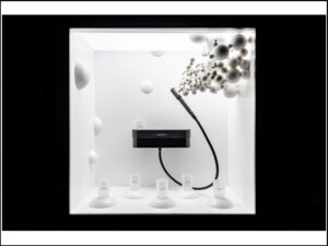 Nel cuore del giardino, due spazi completavano l’esperienza: Aqua Atelier: un angolo creativo dove ogni visitatore può comporre il proprio Aqua Poem, un’interpretazione personale del legame con l’acqua e Aqua Bar: non solo un luogo di ristoro, ma anche di riflessione. Realizzato con bottiglie riciclate, punta i riflettori sull’impatto della plastica monouso e sull’importanza di soluzioni sostenibili come i sistemi di filtrazione domestica GROHE.