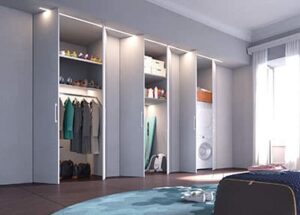 ECLISSE Syntesis® Areo è pensato per chiudere e nascondere cabine armadio, scarpiere, ripostigli, nicchie e sottoscala attrezzati, con una soluzione di design a effetto filo muro totale. Versatile e discreto, ECLISSE Syntesis® Areo offre la massima flessibilità grazie alle numerose configurazioni, aperture e dimensioni, anche su misura. Gli sportelli filo muro garantiscono una perfetta continuità tra anta e parete e sono pensati per un pratico uso quotidiano attraverso comode aperture push-pull completamente invisibili. Il tutto è stato concepito per offrire un prodotto funzionale ma, al contempo, elemento di arredo. Il pannello dell’anta viene fornito con un rivestimento primer, trattamento che lo rende pronto ad essere pitturato e rifinito come la parete oppure ricoperto con carta da parati, per un risultato finale all’insegna della totale omogeneità. Il telaio è versatile e si integra sia nelle pareti in muratura, sia in quelle in cartongesso. La soglia è rifinita in modo tale da assicurare un perimetro della struttura pulito e minimale. I profili del telaio sono disegnati per integrarsi perfettamente nella parete e al contempo scongiurare il rischio di crepe, mentre i sistemi di apertura, quali cerniere e pistoni idraulici, sono collaudati per garantire solidità e affidabilità dei meccanismi nel tempo.