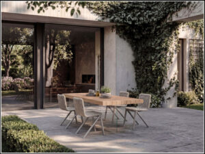 Per garantire resistenza e durata nel tempo, ogni prodotto è stato ripensato utilizzando materiali ad alte prestazioni, come acciaio inox e teak naturale, per le strutture e i piani, gres ceramico e XGlass, per le superfici per resistere agli agenti atmosferici, tessuti tecnici e sistemi drenanti, per favorire il rapido deflusso dell’acqua e facilitare la manutenzione.