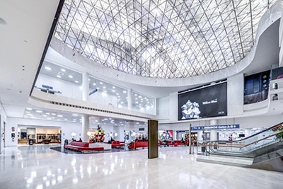 Transitato da 9,5 milioni di passeggeri all’anno (nazionali ed internazionali) e con una vasta offerta di servizi e collegamenti con la città di Milano, l’aeroporto di Linate è stato riprogettato a pianta aperta e spaziosa con Krion® K-Life 1100, il Solid Surface di Porcelanosa per le pareti, le aree e le strutture comuni.