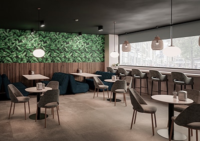 Composti da due fogli di alluminio e uno spessore di 4 mm, questi murales, pensati per grandi spazi residenziali, alberghieri e commerciali, oltre che per il rivestimento di mobili, di rapida installazione, basso peso e facile pulizia, sono pieni di motivi tropicali, fauna esotica e colori vivaci, disponibili in due tipi di finiture: Matt (texture opaca con piegatura meccanizzata e curvatura a freddo) e Glazed (finitura brillante lavorabile) e sono pensati per grandi spazi residenziali, alberghieri e commerciali, oltre che per il rivestimento di mobili.