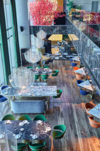 SACHI Restaurant ha recentemente ricevuto l’importante riconoscimento Best Luxury Restaurant in Egypt ed è approdato a Giza, precisamente a Sheikh Zayed, come SACHI Park St, firmato dallo studio di architettura Alchemy Design Studio. SACHI Park St condivide la filosofia e le atmosfere del SACHI Restaurant. Le suntuose sale, organizzate su due livelli, sono adornate con marmi pregiati e mosaici raffinati che, insieme alle ampie vetrate e ai lampadari preziosi, regalano all’ambiente un tocco sofisticato. I 350 coperti, organizzati in modo da favorire la comunicazione tra i commensali, offrono sedute confortevoli e accoglienti, selezionate tra le più prestigiose collezioni Pedrali. Tra queste, la collezione Ester, disegnata da Patrick Jouin: poltrone e sgabelli che paiono preziosi monoliti di pelle, scelti nei toni della terracotta e del verde muschio con una gamba in pressofusione d’alluminio. All’interno dello spazio spiccano le poltrone Jazz, che si caratterizzano per armonia di forme, ergonomia ed eleganza e per le accoglienti sedute imbottite con schienale curvato e avvolgente, separato dal sedile da un’apertura che le rende estremamente funzionali. Le sedute sono sostenute da una leggera struttura in acciaio che ne garantisce il giusto equilibrio di proporzioni e spessori. La collezione Laja, disegnata da Alessandro Busana, che quest’anno compie dieci anni, e le poltrone Gliss, disegnate da Claudio Dondoli e Marco Pocci, regalano colore e dinamismo alle sale.