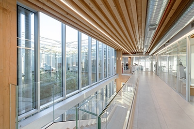 Il progetto della nuova sede di Iperceramica a Fiorano Modenese (MO) è stato firmato dallo studio MCA – Mario Cucinella. L’edificio si sviluppa su due livelli per un totale di 1.700 mq ed è stato realizzato con strutture in elementi prefabbricati in legno, garantendo l’utilizzo delle ultime tecnologie costruttive per quanto riguarda materiali, sostenibilità e sistemi di prefabbricazione. Il carattere del progetto è definito dalla struttura estremamente leggera, realizzata utilizzando il legno lamellare combinato ad altri materiali come il vetro e l’acciaio per garantire solidità e trasparenza e offrire il massimo benessere degli ambienti interni. Anche la grande vela di copertura dell’edificio doveva rispondere a caratteristiche estetiche e tecniche molto chiare: doveva permettere alla luce naturale di penetrare all’interno per offrire il massimo confort visivo e termico, riducendo al minimo l’abbagliamento. Per questo motivo si è deciso di affidarsi all’esperienza del Gruppo francese Serge Ferrari, leader mondiale nella produzione di materiali compositi flessibili, sostenibili e dalle elevate prestazioni tecniche. L’intervento sul tetto è stato realizzato utilizzando oltre 2.000 mq di membrane microforate Serge Ferrari, Frontside View 381 e Frontside Print 371, le cui caratteristiche rispondevano perfettamente ai requisiti di regolazione termica, corretto apporto di luminosità naturale e trasparenza verso l’esterno.