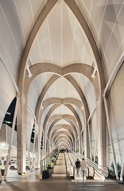 Gli attributi che meglio contraddistinguono Chadstone Link, la nuova opera architettonica realizzata da Rubner Holzbau a Melbourne, in Australia sono monumentalità e leggerezza. Chadstone Link è il nuovo passaggio pedonale che collega il centro commerciale ‘Chadstone’ con l’edificio per uffici ‘Tower One’ e l’Hotel Chadstone del gruppo alberghiero Sofitel. Il suo polo di attrazione è sicuramente la volta a crociera in legno lamellare di larice, che sa offre un ambiente naturale e rilassante a protezione dalle intemperie. 110 metri di lunghezza e 15 di altezza, il Link è uno degli esempi di architettura urbana che mira a trasformare Chadstone – già uno dei più grandi centri commerciali dell’Australia con più di 20 mln di visitatori l’anno e oltre 530 negozi al suo interno – in un crocevia di scambi e interconnessioni internazionali.