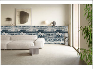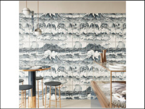 - Sea majolica, una reinterpretazione grafica delle tradizionali maioliche portoghesi 20×20. Su un’unica lastra 60×120 vengono intrecciati motivi di onde, nuvole e navi in tonalità blu, creando un gioco di illusioni ottiche tra mare e cielo.