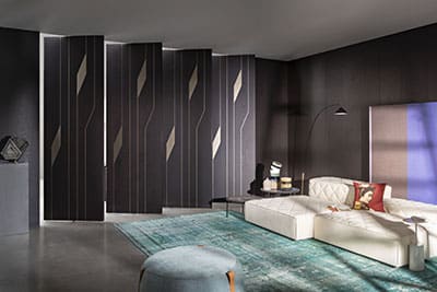 Teatro di Lualdi è un sistema divisorio personalizzabile in tutte le sue variabili, strumento ideale per rispondere alle esigenze di un mercato contract e residenziale che richiede spazi altamente versatili e modulabili. Creato dall’architetto Andrea Boschetti, oggi viene presentato in nuova versione in rovere moka con inserti in bronzo. Solo un esempio delle infinite possibilità di personalizzazione di un progetto nato per creare soluzioni divisorie flessibili e contemporanee, adatte al design di svariate aree funzionali, dalle residenze private alle clubhouse, dagli ambienti executive business agli spazi entertainment. Il carattere poliedrico di Teatro si manifesta inoltre attraverso la possibilità di ‘vestire’ ogni elemento con materiali, colori e pattern diversi. “Teatro – racconta Andrea Boschettitrae ispirazione, come dice il nome stesso, dal sipario teatrale, permettendo agli scenografi dell’occasione – abitanti, architetti o designer – di vestirlo secondo atmosfere, mood e coreografie desiderate. La nuova versione in rovere moka ne è la prova tangibile”. “Abbiamo nel DNA aziendale la capacità di sviluppare un prodotto personalizzato – racconta invece Alberto Lualdi, AD dell’azienda – in grado di fornire soluzioni alle esigenze abitative più eterogenee. La scelta di produrre elementi, porte e sistemi divisori così personalizzabili da non rientrare a catalogo nasce proprio dalla volontà di soddisfare quanto più individualmente le esigenze dei committenti e le istanze degli architetti”. La nuova versione del sistema Teatro del 2021 è realizzata in rovere moka con inserti in bronzo.