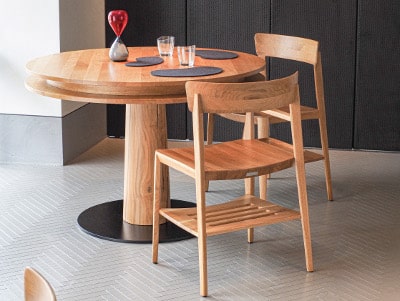 Le vernici igienizzanti Healthy.Wood di Milesi, marchio del Gruppo multinazionale IVM, hanno permesso di assicurare protezione assoluta e duratura contro i batteri alle superfici dei tavoli del ristorante, senza alterare le caratteristiche naturali del legno: un pregiato massello di rovere proveniente da aree di riforestazione controllata, è elemento distintivo degli arredi disegnati dallo stesso Oldani.