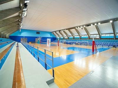 Il Palazzetto dello Sport ‘Guido Barbazza’ di San Donà di Piave (TV) è stato completamente rinnovato, in cui Rockfon, con le sue soluzioni per il comfort acustico e la sicurezza, ha giocato un ruolo primario nel progetto. L’intervento principale mirava a innalzare il controsoffitto di 40 centimetri per consentire di giocare le partite di pallavolo di serie A, e vi era la necessità di realizzare un nuovo impianto di illuminazione interno ed esterno, come sistemare l’ingresso per il pubblico e la biglietteria. Altro aspetto importante riguardava il trattamento ignifugo per gli 800 posti numerati, e la verniciatura delle gradinate. Rockfon è intervenuta nel progetto in coerenza con gli spazi interni del palazzetto (al centro della palestra e sulle gradinate), valorizzando le performance acustiche in relazione alla struttura dell’edificio, attraverso la fornitura di due sistemi differenti per le esigenze strutturali, in abbinamento ai pannelli Rockfon Boxer. “Nella parte centrale del palazzetto abbiamo sostituito un soffitto in legno-magnesite con Rockfon® System OlympiaPlus A Impact 1A™, un sistema dotato di un’elevatissima resistenza agli urti (Classe 1 A) composto da struttura Chicago Metallic, e da appositi profili pensati per tenere in posizione i pannelli Rockfon Boxer (da 40mm) in ambienti in cui le superfici possono essere soggette a urti da palla a elevato impatto. Sulle tribune, a seguito dell’esigenza di installare i pannelli in aderenza con il solaio, si è optato per il sistema Rockfon® System T24 A Impact 2A™, sempre testato per resistere a urti accidentali od occasionali”, afferma l’arch. Francesco Zacchia, Sales Area Manager Rockfon per il Triveneto.