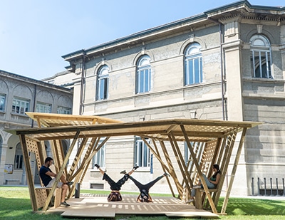 Il progetto è partito con la presa di coscienza di numeri preoccupanti, ad esempio l’alto tasso di autolesionismo registrato nel 2021, il sovraffollamento delle carceri e la mancanza di valvole di sfogo, con l’obiettivo di migliorare le condizioni degli spazi collettivi penitenziari, sviluppando un prototipo di palestra aperta, ma coperta, per la sezione femminile, composta totalmente in legno e completa di dispositivi mobili, come sedute e panche per l’attività fisica.