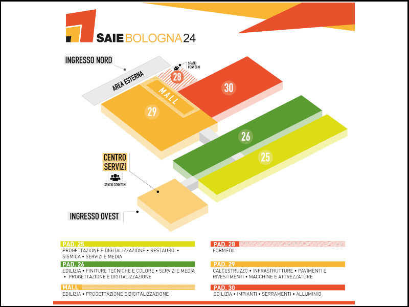 SAIE 2024, in programma dal 9 al 12 ottobre 2024 a Bologna, sarà l’appuntamento dell’anno per i professionisti del settore in grado di offrire una panoramica sulla produzione della filiera delle costruzioni grazie a quattro saloni espositivi tematici (Progettazione e Digitalizzazione; Edilizia; Impianti; Servizi e Media), piazze d’eccellenza e iniziative speciali dedicate agli argomenti di maggiore attualità per il comparto.