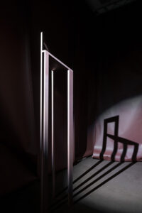 L’installazione nasce dall’idea di Motel409, che l’artista Gustaf von Arbin e CARADAVIDE hanno messo in scena: una casa ‘astratta’, le cui stanze sono rotoli di X-KIN® che scendono leggeri dal soffitto. Ogni stanza racconta una storia visiva e sonora attraverso oggetti domestici e arredi progettati da CARADAVIDE con il nuovo materiale X-KIN® by FENIX, e pensati in dialogo con le ombre illusorie disegnate dall’artista svedese sulle pareti fluide, sempre realizzate con X-KIN®.