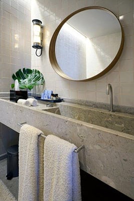 L’architetto Teresa Nunes da Ponte e l’interior designer Andrea Previ, hanno firmato il boutique hotel Verride Palacio Santa Catarina di Lisbona, nato dalla riconversione di uno splendido palazzo antico del 1750. L’hotel si erge nel fiorente quartiere del Chiado a Lisbona, conservando intatti dettagli architettonici originali. La struttura, ricostruita a seguito del terremoto che colpì la città nel 1755, restaurata e ristrutturata poi negli anni ’70, ha mantenuto il suo design esteticamente pulito e rigoroso, tipico dello stile architettonico funzionale pombalino del XVIII secolo. Le suite riprendono l’opulenza delle nobili famiglie portoghesi del XVIII secolo e il restauro ha conservato i dettagli originali: dai soffitti scolpiti in legno, ai pannelli di piastrelle portoghesi, agli stucchi in stile roccocò. In queste stanze, gli azulejos, le tipiche piastrelle artigianali portoghesi dalla superficie smaltata e decorata, rivestono le superfici dei bagni. Le ampie finestre delle camere affacciano sugli antichi quartieri di Lisbona, consentendo alla serenità del paesaggio di invadere ed ispirare; le camere sono decorate con linee moderne e colori pastello, in contrasto con le facciate colorate degli edifici circostanti. I toni neutri degli interni, dai velluti alle lenzuola alla tappezzeria, sono bilanciati dall’arredo realizzato su misura in legno con dettagli in ottone e bronzo. Per le zone bagno è stata scelta la rubinetteria CEADESIGN in finitura acciaio inox satinato e Light Gold satinato, una scelta estetica e funzionale dal design senza tempo.